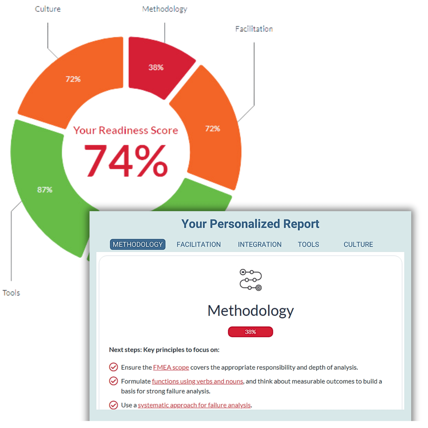 We will ask you 22 Yes/No questions on the 5 areas for FMEA success. In 2 minutes or less you will have a tailored report to help you improve and enhance your FMEA knowledge.